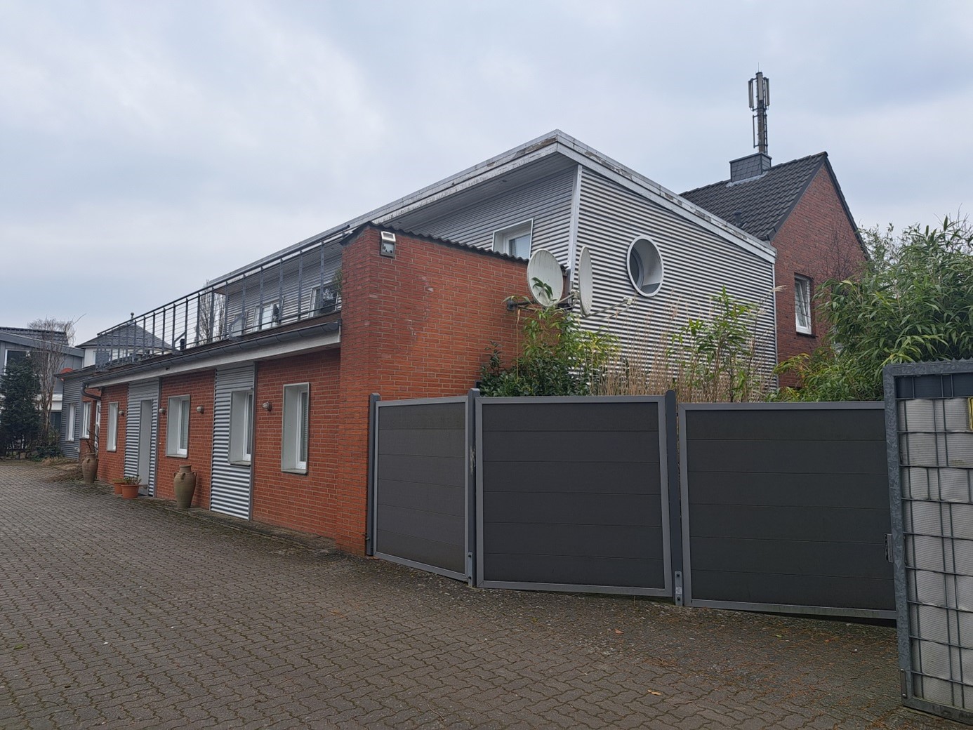 Das moderne Gebäude liegt in guter Lage in Stadtteil St. Jürgen in rückwertiger Lage und ist durch ein großes Tor von der Straße nicht einsehbar. Zu dem Grundstück gehört ein großer Hof auf dem ausschließlich die Fahrzeuge der Mieter und des Eigentümers parken. Das sehr moderne Haupthaus verfügt über eine großzügige Wohneinheit ca.187 m² mit vielen offenen Bereichen und großer Galerie. Man könnte diese Wohnung durchaus als Haus im Haus bezeichnen, sie hat einen Loft ähnlichen Charakter.